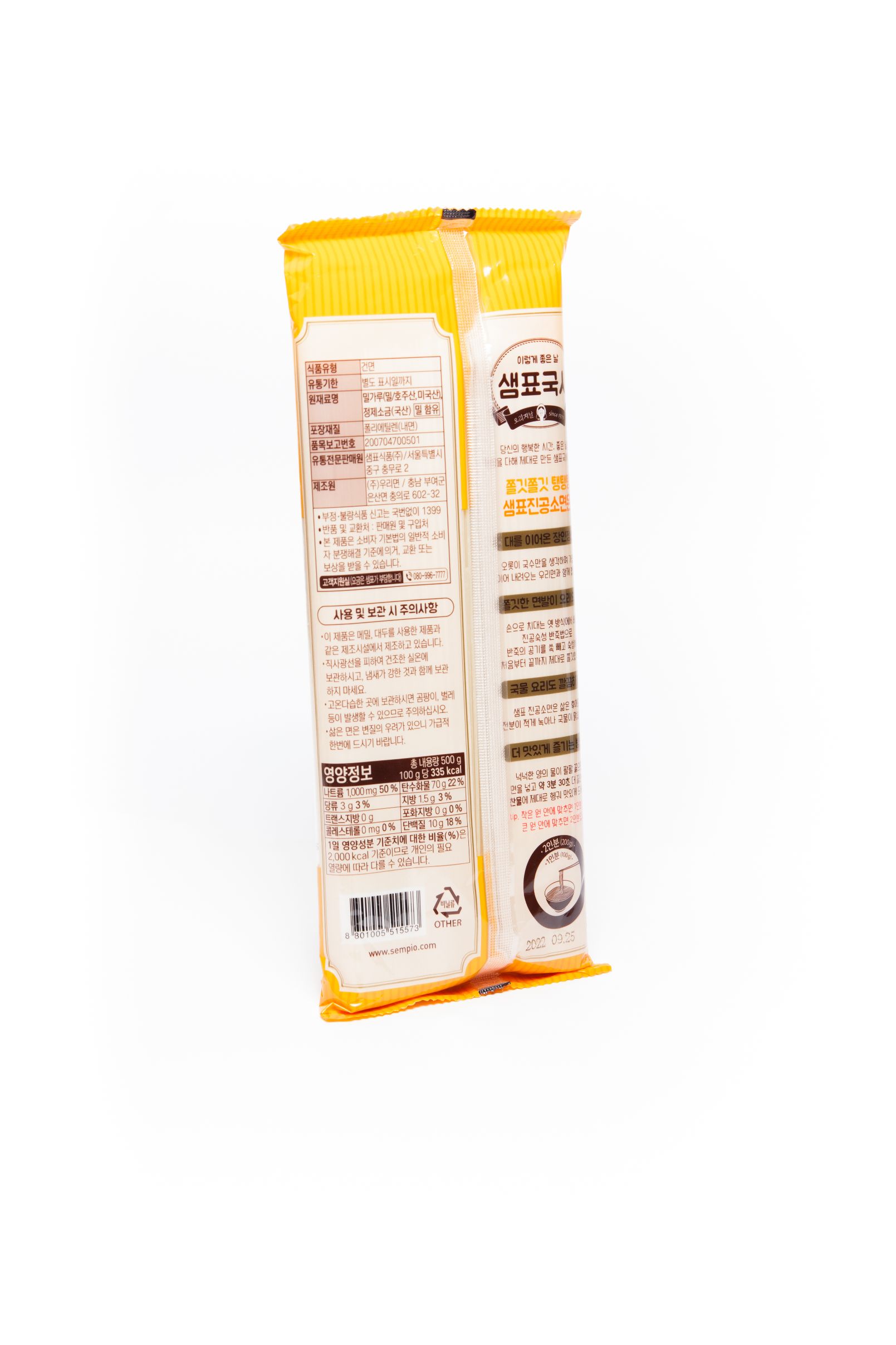 Ця пшенична локшина виготовляється за допомогою методу замісу з витримкою у вакуумі, методу, розробленого з дотриманням старого традиційного способу замісу тіста вручну, видалення небажаного повітря і дозрівання тіста, надаючи йому більш жувальну і приємну текстуру. Пшенична локшина Семпіо дуже пружна, зберігає свою приємну текстуру і не стає м’якою, не розварюється, що робить її ідеальною як для гарячих, так і для холодних страв з бульйоном.